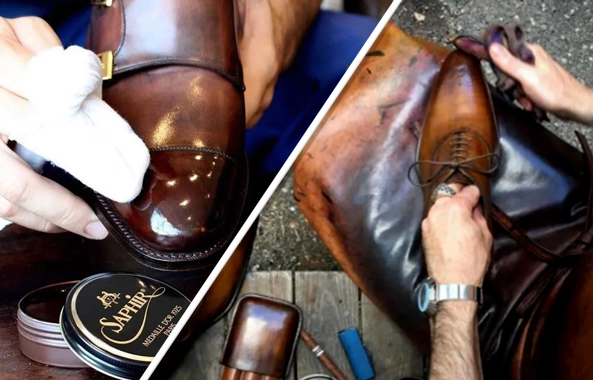 作為一位懂生活的紳士,鞋履的顏色也可以如生活般充滿豐富的色彩。與師傅一起賦予皮鞋別樣的色彩,如:紅色的火熱、綠色的清新、紫色的高雅、藍色的莊重,以及一個個引人入勝的名字,如:「可可那堤」、「楓葉」、「爵士黑」..等。每種顏色都在訴說著一段只屬於您的故事,這樣的Patita擦色工藝,可以讓訂製鞋履有更豐富與質感的色調,更有獨特性與生命力。